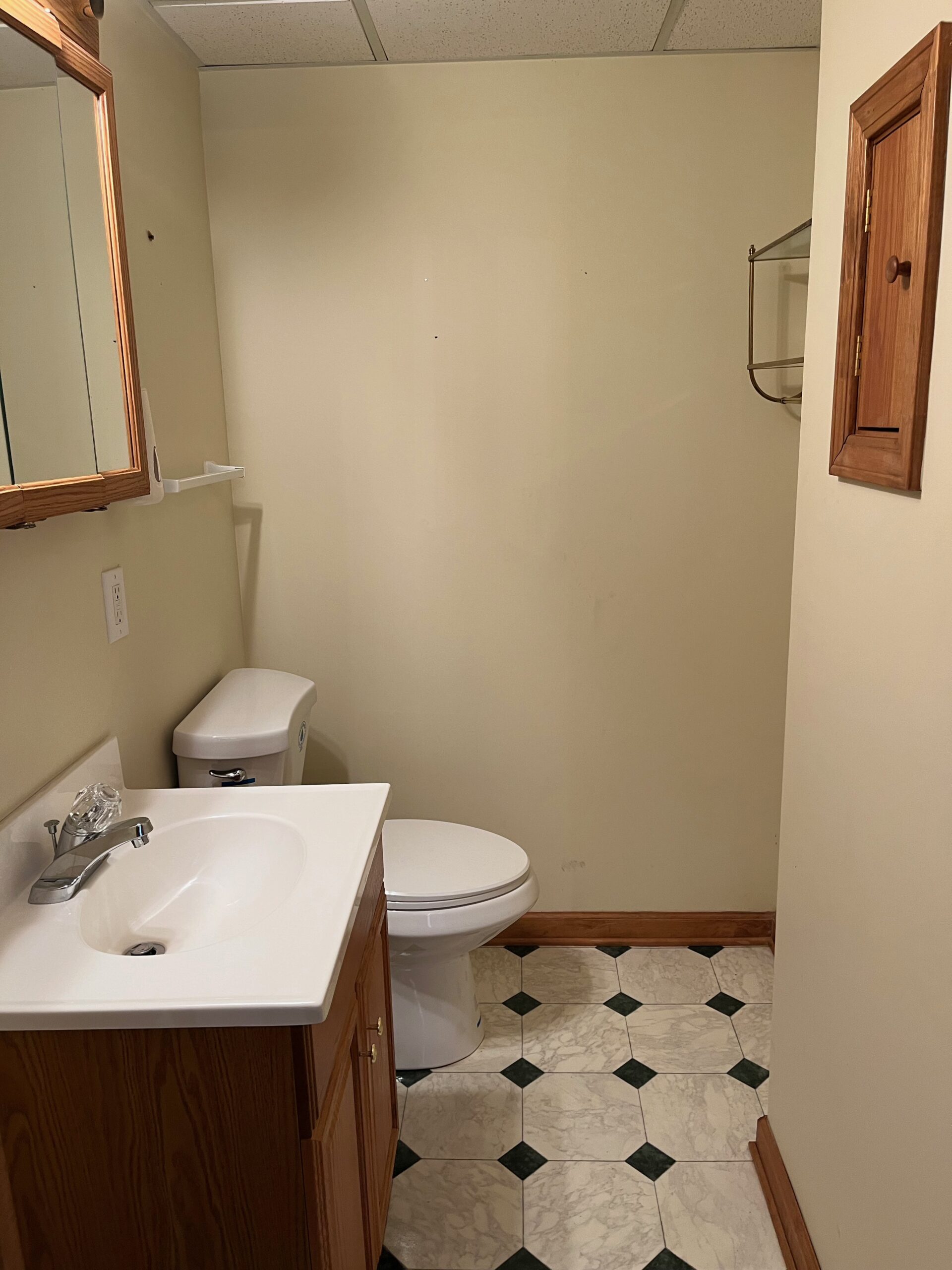 - Lower level partially finished with half bath, kitchen with wood cabinet’s, den/office space or spare bedroom ( no closet) and other side unfinished with cement floors and area to put in the washer and dryer.