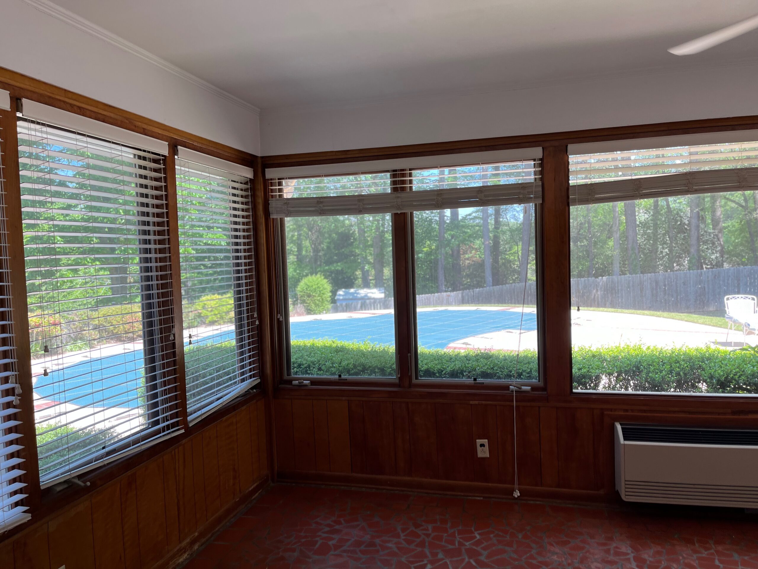 - Enclosed sunroom with terrazzo floors, overlooks the beautiful backyard and pool, and access to the back patio