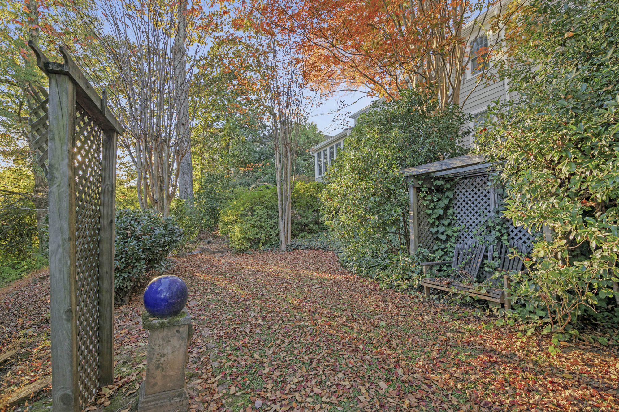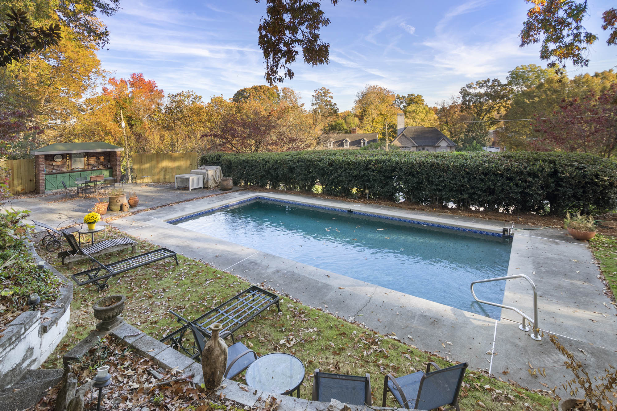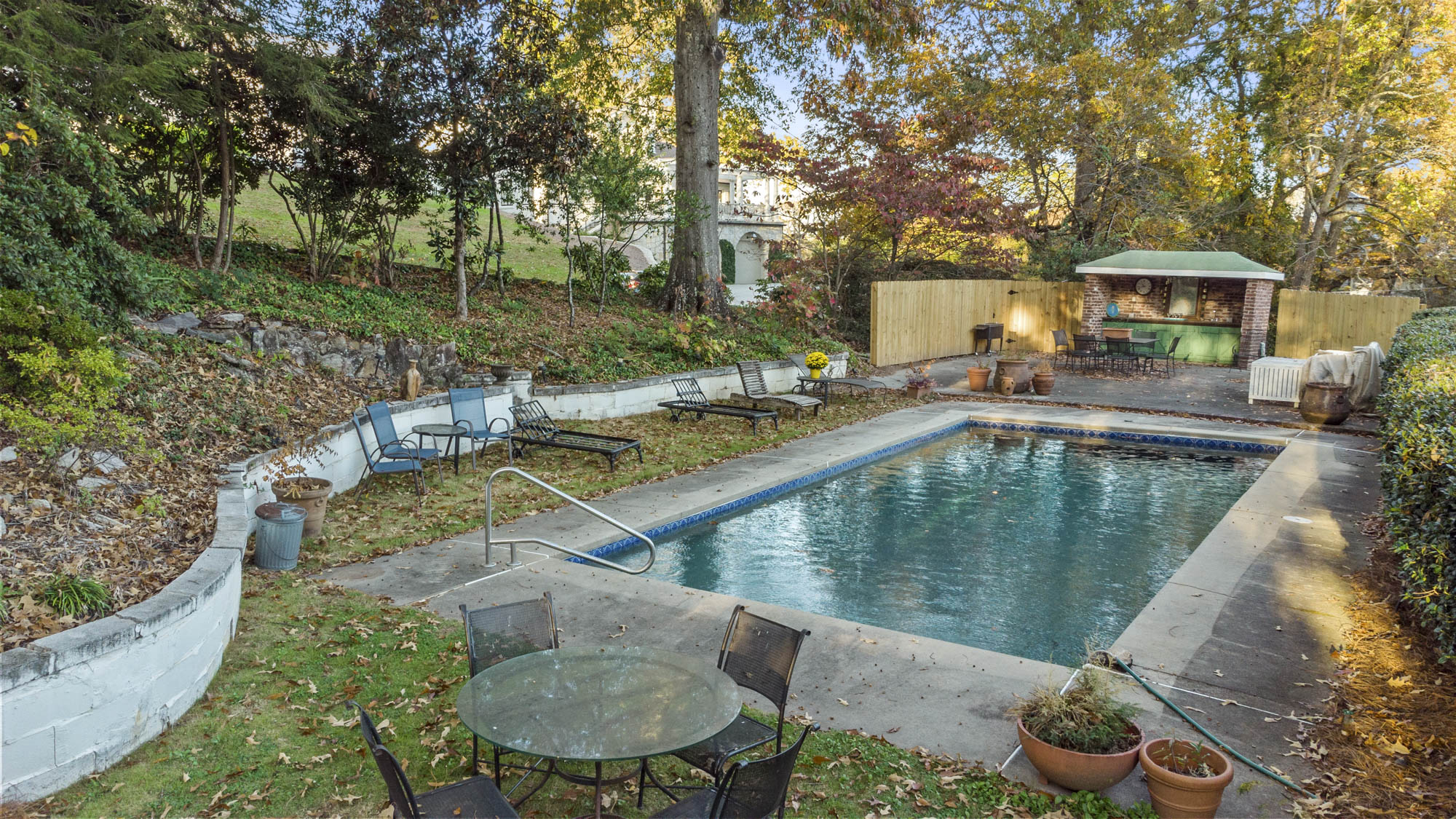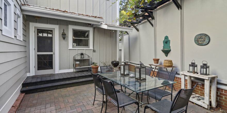 - Huge yard, in ground pool, cabana, plenty of sitting spaces and outdoor entertaining, enclosed small courtyard that is wonderful for dining al fresco and for the gardener with pergola above it