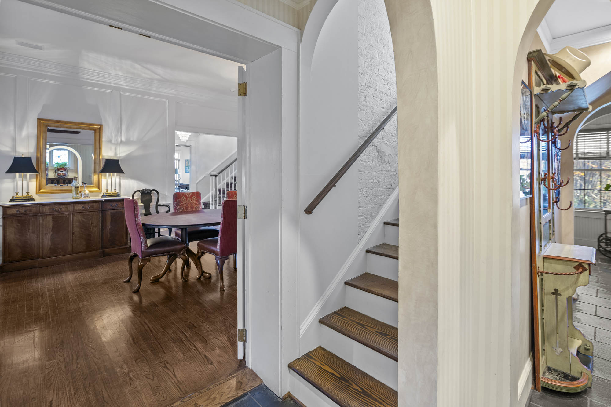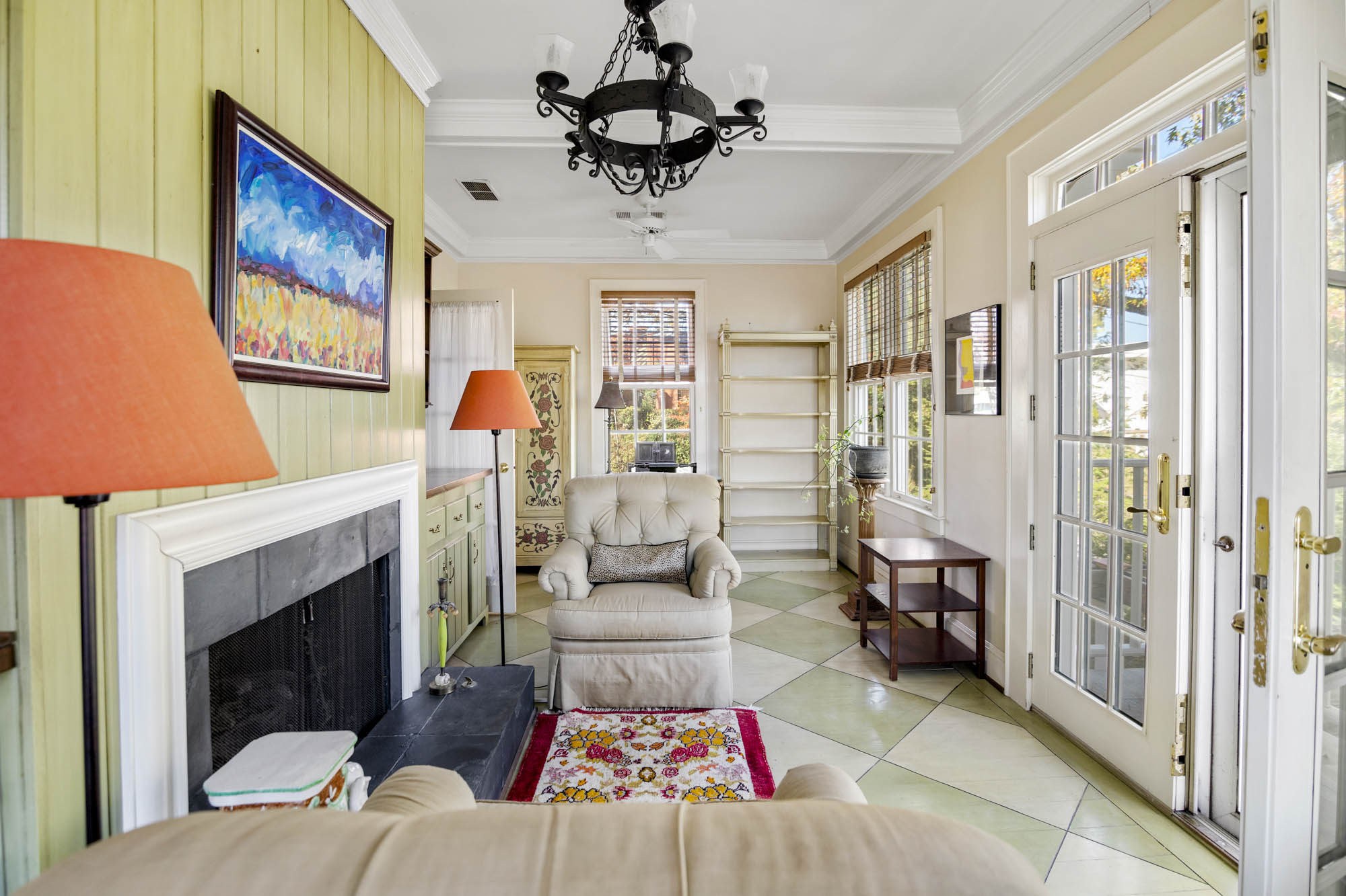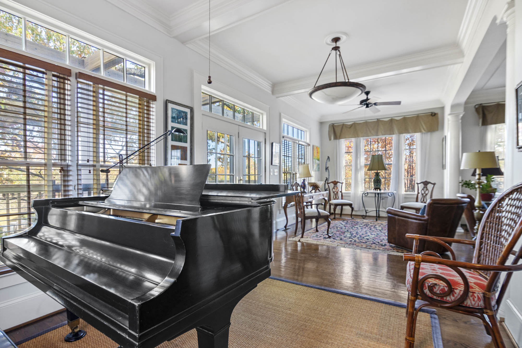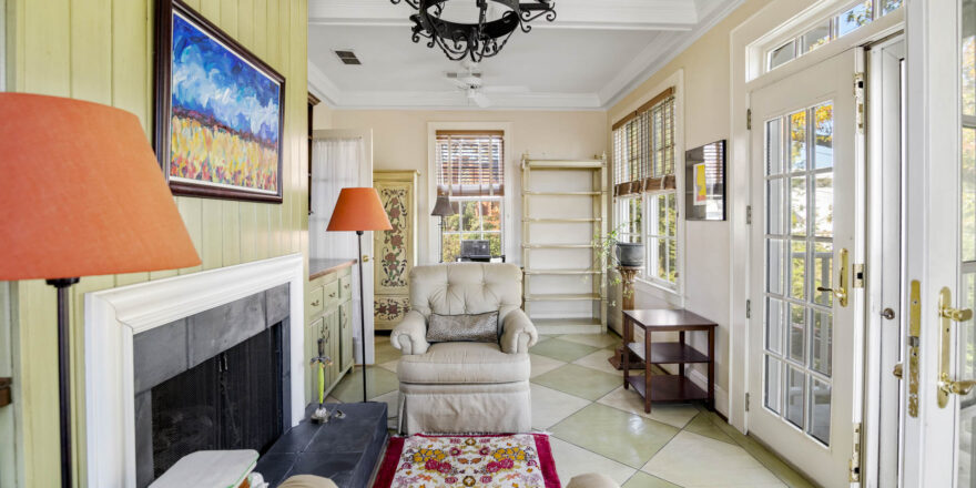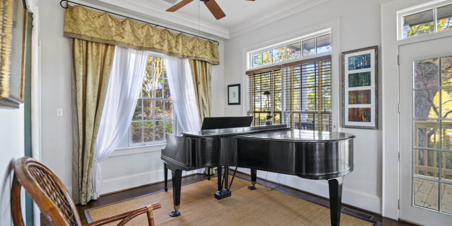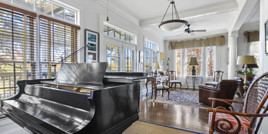 - Large entry foyer, hardwood floors, Enormous Living room, sitting/music room, lots of light through all the window’s, access to the sitting porch /deck overlooking the pool and the beautiful grounds
