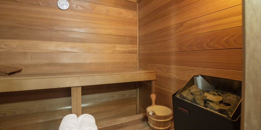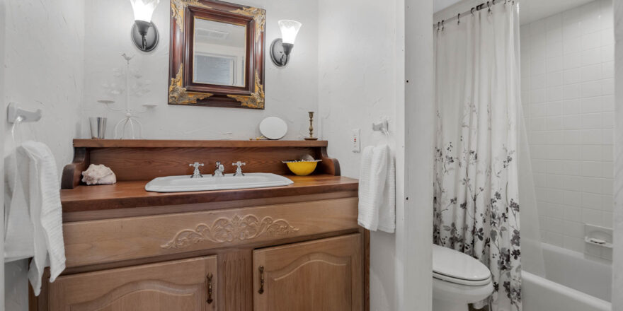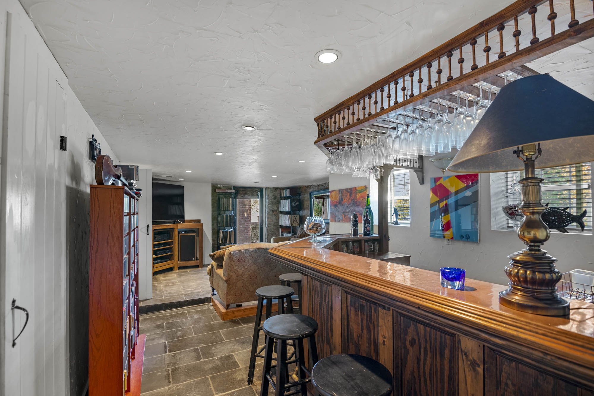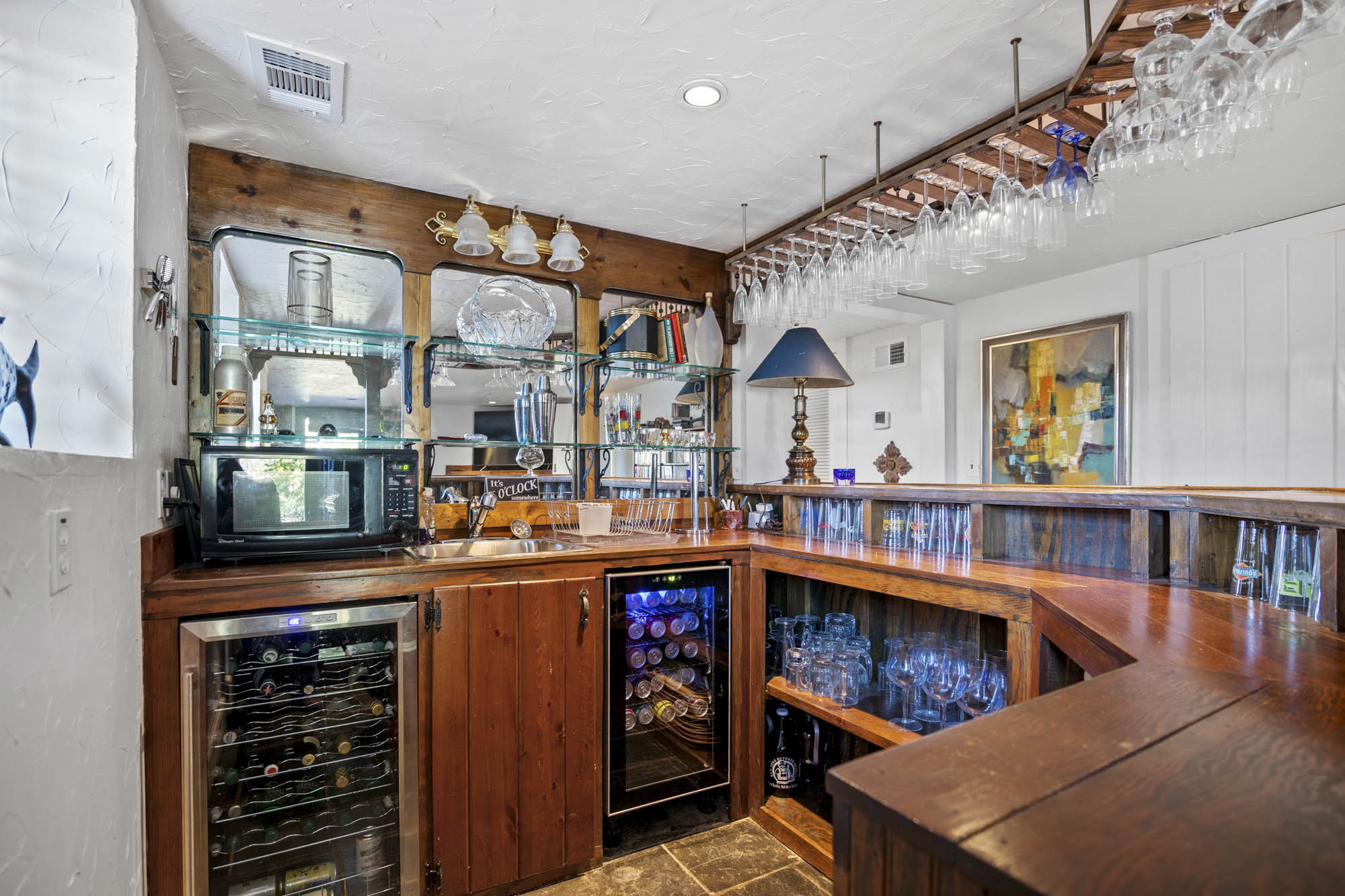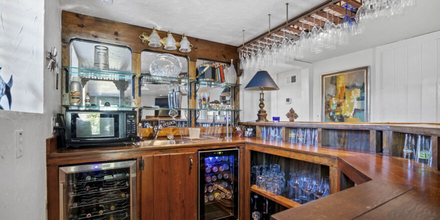 - Finished lower level with bar, den/media room, full bathroom with sauna in hall, laundry room, additional bedroom with full bathroom, lots of storage space and small exercise room